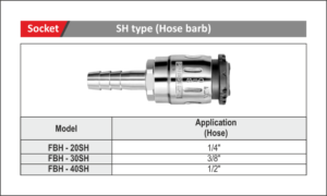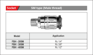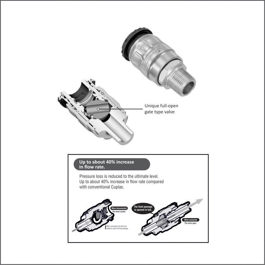 - Steel coupling is suitable for air. Brass or stainless steel is suitable for water. Note that fluid will come out from the plug when disconnected.