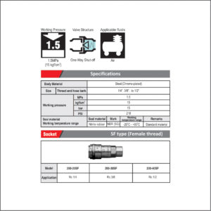 Simple and secure push-to-connect type! Big flow rate! End-face seal design. Gives excellent handling touch.