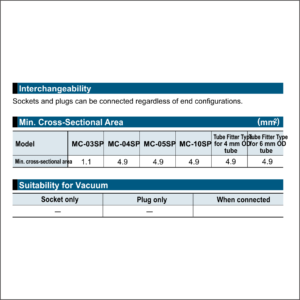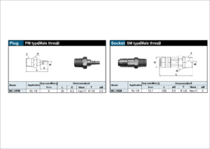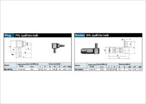 - Automatic sheet of valve in both sockets and plugs prevent fluid spill out on disconnection