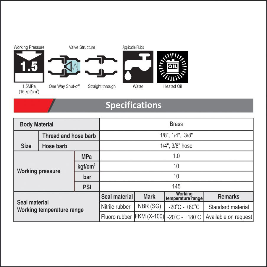 Special steel body is tough against vibration and impact! Male and female thread end configurations are available. Low pressure loss characteristic suits hydraulic equipment applications.