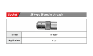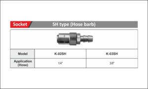 - Push to connect design. Built in automatic shut-off valve in the socket.