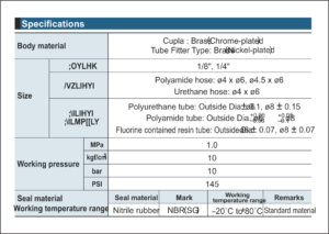 - Withstands a vacuum of up to 1.3 x 10 Pa (when connected) making it possible to be used in leak testing, evacuation and refrigerant gas charge.
