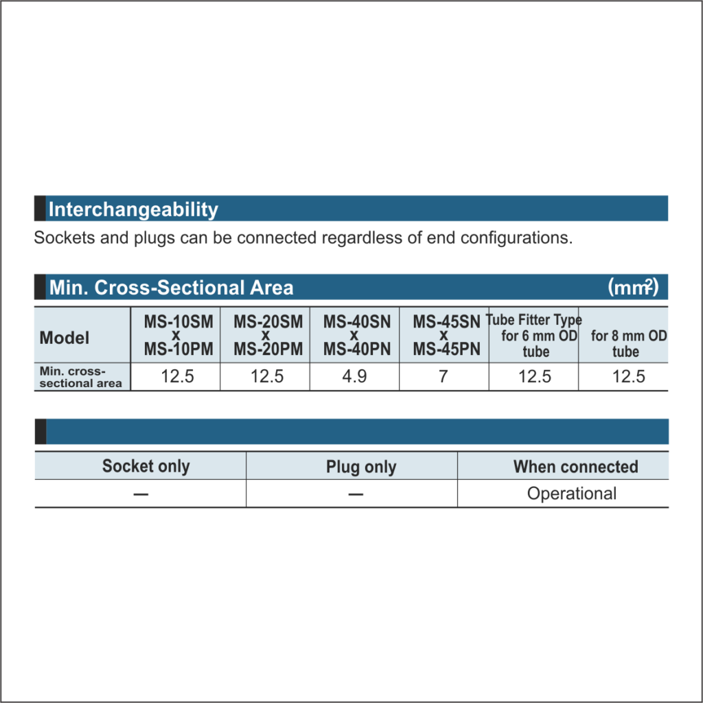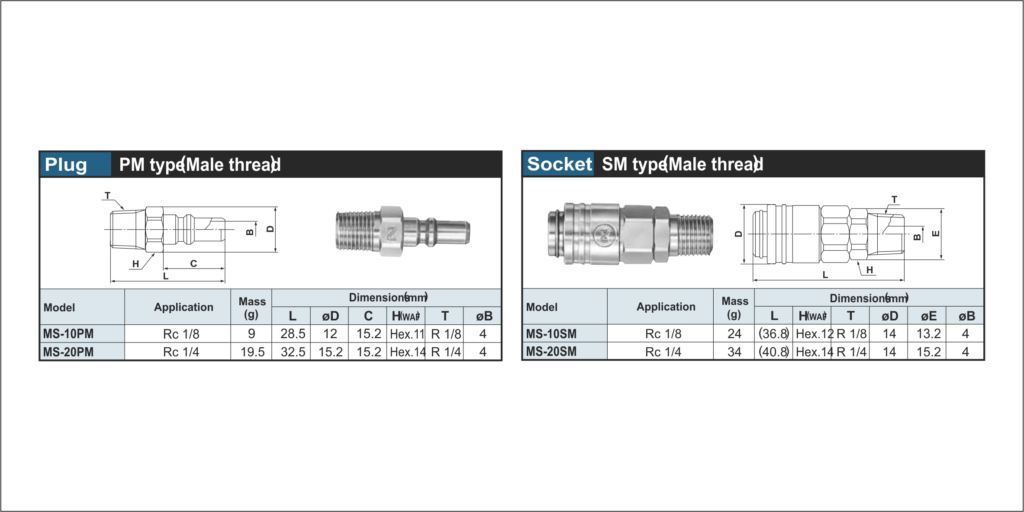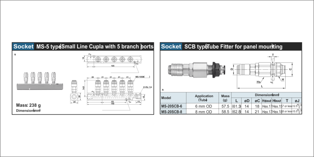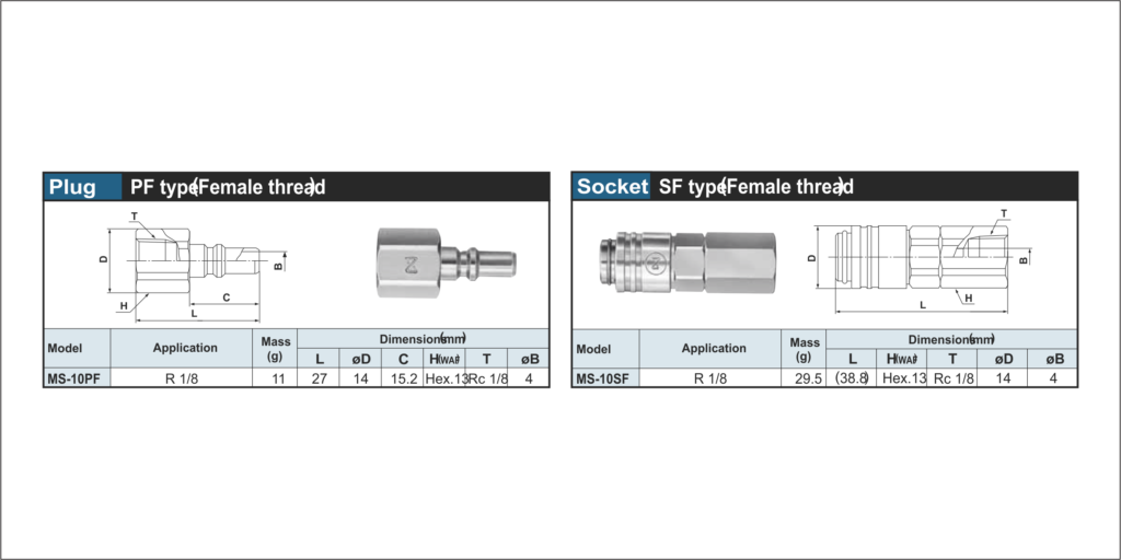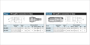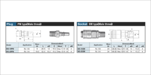 - Automatic sheet of valve in both sockets and plugs prevent fluid spill out on disconnection